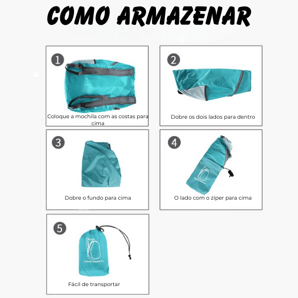 🎒 Dobrável e portátil: dobra completamente dentro de um bolso, tornando-se compacta e fácil de guardar ou transportar.
